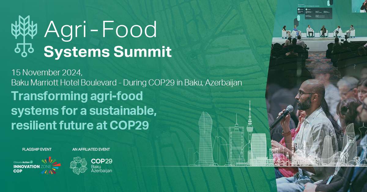 Join us at the Agri-Food Systems Summit for its 3rd annual edition on 15 November during COP29 as a Flagship Forum of the Climate Action Innovation Zone. This premier event will bring together 400 global agri-food stakeholders, including policymakers, investors, innovators, technology providers, farmers and executives from across the sector’s value chain.