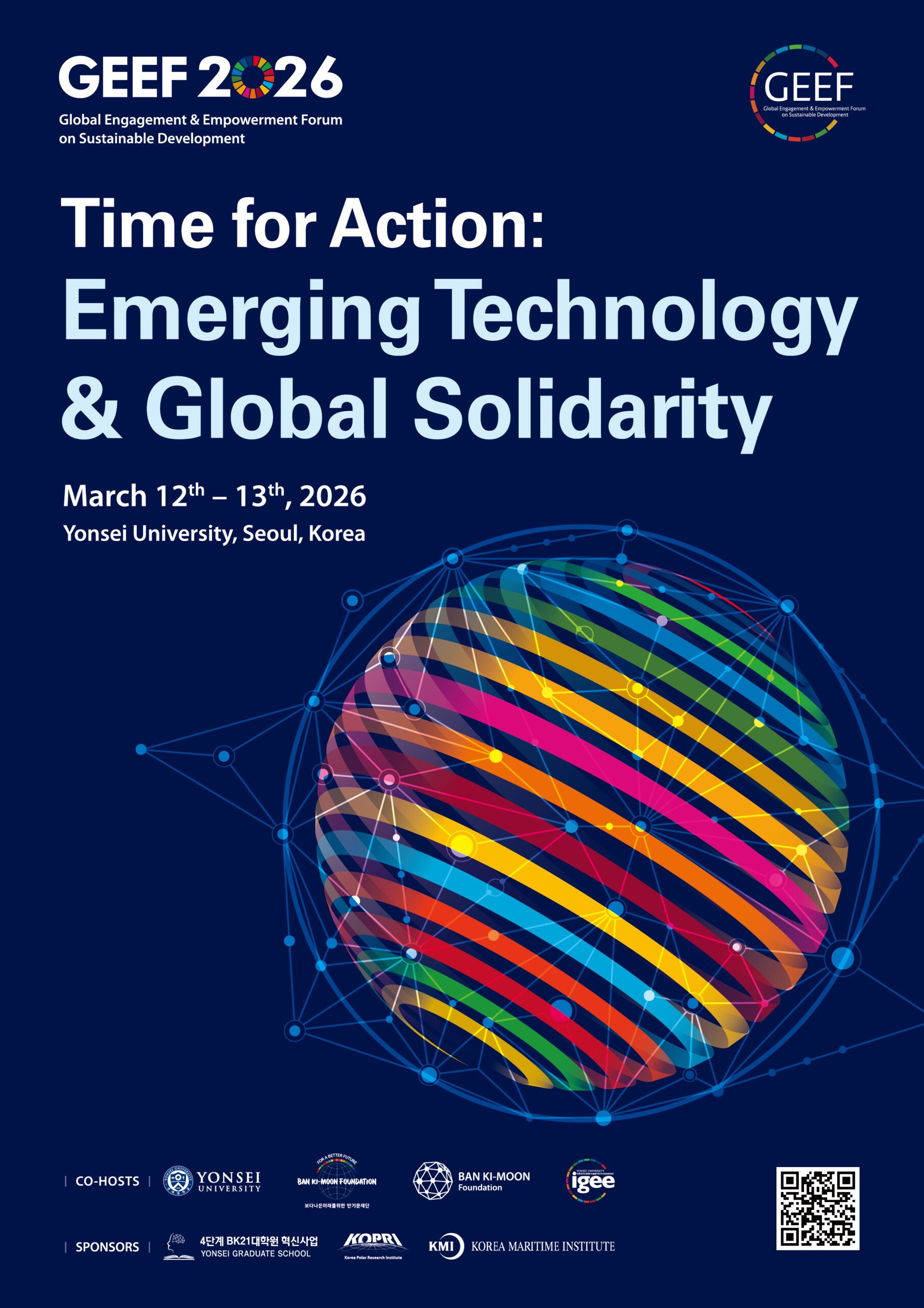 The Global Engagement & Empowerment Forum on Sustainable Development (GEEF), co-hosted by Yonsei University, the Institute for Global Engagement & Empowerment (IGEE), Ban Ki-moon Foundation for a Better Future, and teh Ban Ki-moon Foundation, is an annual international event where all stakeholders, including global leaders and experts, convene to collaborate towards accomplishing the United Nations’ 2030 Agenda for Sustainable Development.