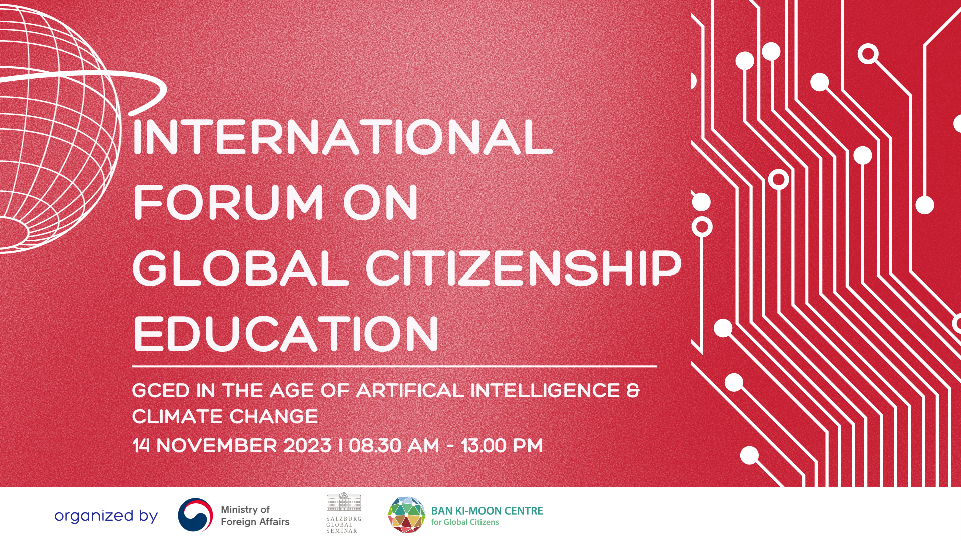 The Ban Ki-moon Foundation, the Permanent Mission of the Republic of Korea to the UN in Vienna and the Salzburg Global Seminar are hosting an International Forum on Global Citizenship Education on the sidelines of the Salzburg Global Seminar’ Civic and Civil Education Symposium on 14 November 2023 at Schloss Leopoldskron in Salzburg, Austria.