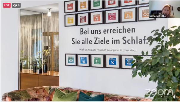 In the last hour of the event, four best practice champions for the SDGs in Austria were showcased. The four examples came from private, education, and civil society sectors.
