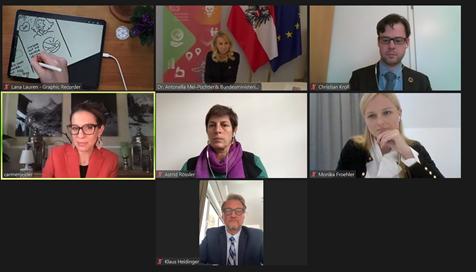 The virtual high-level event was opened by H.E. Austrian Federal Minister for EU and Constitution, Karoline Edtstadler, who emphasized Austria’s commitment to the Agenda 2030: “We have to proceed with the consistent implementation of the SDGs until 2030 and set measures now to see visible effects in 10 years. The Agenda 2030 remains a main ambition in Austria.”