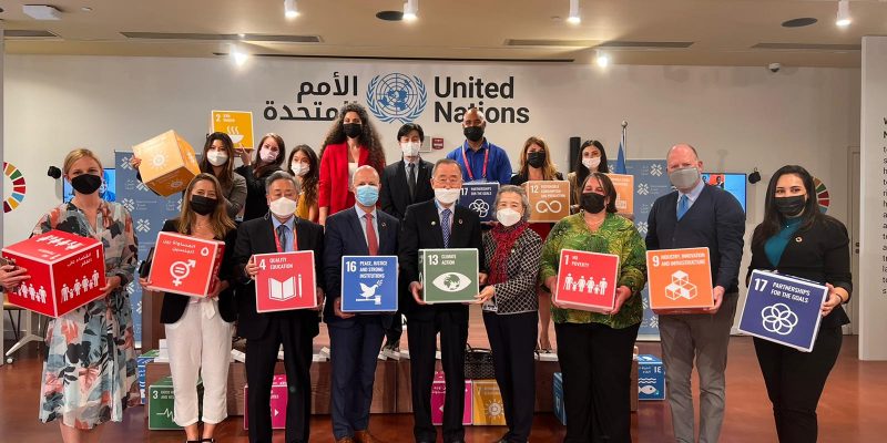 Amid the ongoing war between Ukraine and Russia Co-chair Ban Ki-moon expressed his support for the Ukrainian people at the Ukrainian Pavilion. It was a delight to participate in a tour of the UN Pavilion where Co-chair Ban Ki-moon and CEO Monika Froehler saw how the setup inspired daily visitors to act for the SDGs. At the Korean Pavilion, the delegation learned about the future of smart cities and listened to a concert to experience Korean culture and Kpop.
