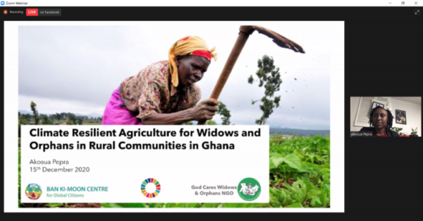 To improve the livelihoods of widows and orphans involved in farming, GC Scholar Akosua Pepra developed the SDG Micro-Project “Climate Resilient Agriculture for Widows and Orphans in Rural Communities in Ghana” (SDGs 1, 2, 5 and 13).
