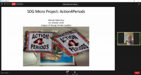 Action4Periods by Hikmat Baba Dua, created a safe space for 60 women and girls in rural communities in Mbanaailiy (Ghana) by engaging elders, women and girls to discuss the stigma of menstrual hygiene and produced 60-70 reusable pads, improving access to menstrual products (SDG 3, 4, 5 and 13).