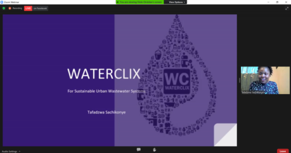 Tafadzwa Sachikonye raised public and private awareness for improved urban wastewater system in Zimbabwe with her project Waterclix for sustainable urban water systems in Zimbabwe (SDG 6 and also 3, 5, 13).