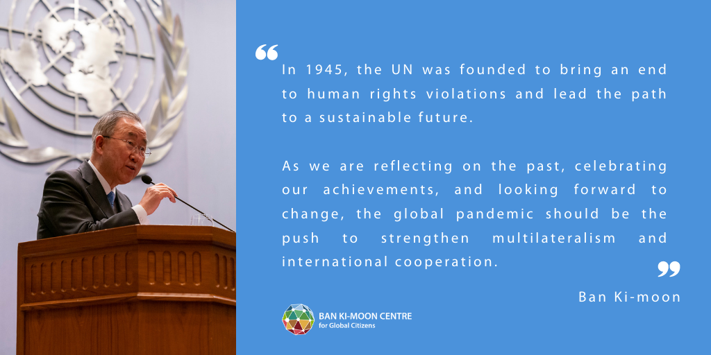 In 1945, the UN was founded to bring an end to human rights violations and lead the path to a sustainable future. Today, we recognize its ceaseless dedication. As we are reflecting on the past, celebrating our achievements, and looking forward to change, the global pandemic should be the push to strengthen multilateralism and international cooperation. 2020 has also been a year of opportunity for unity and positive change. That is why the UN is needed now more than ever and I have continued to support the UN system and partners in these unprecedented times. The values of the UN Charter must remain our guide as we continue to promote three pillars of the UN; international peace and security, human rights as well as development.