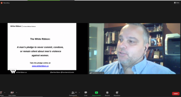 As the first intervention Humberto Carolo – Executive Director of White Ribbon Canada, shared his expertise on education for and inclusion of all, in particular men and boys, to address all forms of gender-based violence: “Accountable, intersectional, human rights-based, feminist-informed primary prevention with men and boys is an important complementary approach to endingall forms of gender-based violence and discrimination. Men and boys have important roles to play as gender equality allies and change agents at the individual and systemic levels.”